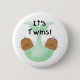 African American baby girl and baby boy announcement buttons with kid style text that reads "It's Twins!".