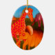 Orange/Red: Dominant in the giraffe's spots and the surrounding border, creating a warm and inviting feel.
