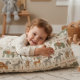 Bring extra comfort and character to your young child’s bed with this African Animal Parade body pillow. This oversized, plush cushion features a lively repeating pattern of stylized lions, giraffes, zebras, and elephants, accented by earthy tribal motifs on a clean ivory background. Whether used as a cozy snuggling companion or a decorative accent along the headboard, it’s a perfect fit for a modern, safari-themed bedroom. This durable and soft pillow adds a touch of adventure and "big kid" style to any little explorer's space. Search ID1262 to see other products with this cute safari pattern. Note: design adapted from generative content.