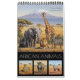 Calendar featuring African Animals, iconic wildlife in Africa. On the front page you can see snow capped peak of Mount Kilimanjaro with Elephant, Giraffe, Zebra, Lion and Gorilla. Each of the 12 pages inside the calendar features a different animal depicted in doted photo art style. Guide to animals is on the back page. Other animals include Rhinoceros, Cheetah, Hippopotamus, Kudu, Buffalo and Black Mamba snake. Select year, language and holidays configuration before adding to cart.