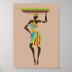 An arty, hip graphic illustration of an African tribal woman in brightly coloured blue yellow and green dress holding a basket on her head. This brightly coloured design is hip, arty and stylish and would be perfect for home décor or for lovers of African inspired art everywhere. The background colour can be changed to your taste.