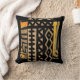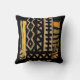 The pillow showcases contemporary African mud cloth prints, drawing inspiration from traditional patterns. These designs often feature geometric shapes, tribal abstract patterns, woven with cultural narratives, and earthy tones.