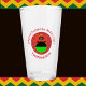 Personalised beer glass features an angel dressed in the African Diaspora Flag, or African American Flag. Angel flies inside a red fractal circle. Red circular lettering above reads "African Diaspora Angel" with space to add the year. Below, in the same lettering, a place for a name. Personalise a gift for a housewarming or any holiday, event, or special occasion. From Juneteenth to Kwanzaa to birthdays to family reunions, and more.