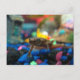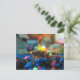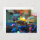 This African Dwarf Frog is looking straight into the camera and has one of his feet propped against the glass of the tank. You can see the gravel from the tank in the background. This postcard is perfect for the aquarium lover