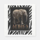 A photograph of an elephant in a zebra skin frame with "Africa" text. Match these napkins with paper plates with the same or a similar image.