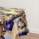 I am very pleased with this purchase. The quality is good, it is heavy and the image decorating it is brilliant and very eye-catching. When I first laid eyes on this tablecloth, still folded and in the transparent covering, it brought a smile to my face and I knew right away it was a good choice. A few days later my wife replaced our old tablecloth with this little gem and was quite satisfied. She noted that it is thick and fits the table very well with just enough hang over (although our dining table is extended by a traditional leaf which we keep in place even if we are not having guests over) and stays put instead of blowing all over the place. The image decorating this tablecloth is brilliant and very eye-catching. It looks even better than it appeared online.