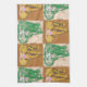 A kitchen towel with gold, and green African Elephants.