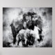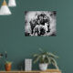 Majestic Female African Elephant with Calf Black and White Watercolor