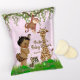 Girl safari baby shower chip bag wrappers with adorable African American baby girl and safari animals on a pink damask jungle background. You can customise this adorable girl safari baby shower chip bag wrapper by simply adding your text. To assemble, wrap the flyer around your chip or snack size bag and secure with double sided or regular tape. Fits 1 ounce chip or snack bag - OR - you can leave the top open, slip in a sandwich bag, and add your own bulk snack mix and seal the top.