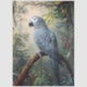 An elegant African Grey Parrot sits gracefully on a moss-covered branch in a vibrant jungle setting, surrounded by diverse tropical plants and foliage, showcasing the beauty of exotic avian life and nature.