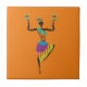 African themed tribal lady in colourful ethnic clothes holding water jugs. This tribal design is colourful and bright.