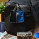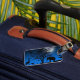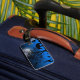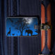 Animals of the African planes grace this beautiful blue and black Luggage Tag.