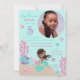 Little mermaid fifth birthday invitation card with underwater creatures.