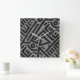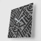This wall clock features an African geometric motif pattern print. The design showcases black and gray colors, making it a striking addition to any room. Crafted from Grade-A acrylic, this 10.75-inch square clock is vibrantly printed using the AcryliPrint®HD process. It includes a non-ticking mechanism and a pre-installed backside hanging slot for easy installation. Perfect for indoor use, this clock requires one AA battery (not included).