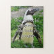 11” x 14” jigsaw puzzle with an image of an African penguin. Optional text reads, “One cannot be angry when one looks at a penguin.”