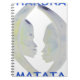 The image prominently features the phrase "HAKUNA MATATA" arranged vertically, with "HAKUNA" at the top and "MATATA" at the bottom. Centrally positioned is a stylised depiction of two faces in profile, facing each other, enclosed within a curved, oval shape. The balanced composition highlights both the text and the central imagery.