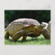 Closeup of male African Spurred Tortoise or sulcata tortoise (Geochelone sulcata) seen from the front at ground level and walking on grass