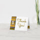Wedding Thank You with African stripes from AK01 Kente pattern with white Adinkra Gye Nyame symbol (meaning: GOD IS SUPREME). Inside has a thank you message and the bride and groom's names (wording can be changed as desired). Matching stripes frame the lower edge. Back has a gold circle with a smaller gye nyame symbol, married couple’s names in script, home address and a proud reminder of the wedding date below. - Search our store for similar matching kente lines and other items with: AK01