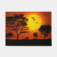 Beautiful digital art African sunset scene with trees, birds and stars.