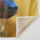 A digital painting that merges hyper-realism with bold, contemporary abstraction. This captivating portrait of a African Wild Dog showcases a harmonious clash of vibrant hues deep blues, golden ochres, and electric greens that breathe life into every fur strand and shadow. The textured, almost cubist brushstrokes add depth and movement, transforming a simple canine profile into a statement of raw beauty and emotional intensity.