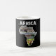 Part of our African Wildlife Continent collection, we features photos of zebras, giraffes, elephants, rhinos, buffaloes, lions and more in the shape of the African continent with the word Africa in a African font in white on this mug.