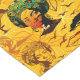 My Design features a stylised portrait of a Beautiful African woman wearing a colourful headwrap. The headwrap is adorned with green and yellow leaf patterns. Her face is filled with a sunset silhouette, complete with birds flying across the sky and a landscape with trees. She wears large, ornate earrings and a beaded necklace. Original Pop Art Style Vector Illustration Copyright BluedarkArt TheChameleonArt.