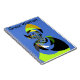 Blue: The dominant colour of the background, bright and saturated, provides a bold and vibrant backdrop.