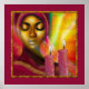 Modern mixed media art of a beautiful African woman with two candles.
