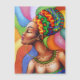 Stylised African Woman portrait, wearing and surrounded by Bright Colours of the Traditional Wax Fabric Design. Original Hand Drawing Copyright BluedarkArt.