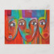 This custom postcard features a contemporary oil painting of three African women's faces vibrantly painted in colourful brush textures.