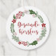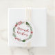 Green and red Christmas holiday wreath gift tags with the words Merry Christmas in Afrikaans: Geseënde Kersfees.