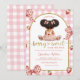 Afro African Girl Pink Bow strawberry berry sweet Invitation