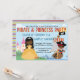 Afro American Princess and Pirate Double Birthday: Ahoy there your highness! Our birthday princess and pirate invitation, brings together two popular characters in fairy tale history. This fantasy filled invitation features an Afro American pirate in his ship and princess by the sea. It's the ideal invitation for siblings having a joint party. Shiver me timbers it's perfect for girls and boys of all ages. Let their little friends decide to be walking the plank or sparkle like an enchanting princess.