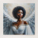 This angel puzzle features oil painting style artwork of a beautiful dark-skinned woman with a curly afro, halo, and large wings against a radiant background. The spiritual-themed image depicts the biblical creature with dark brown skin, resembling an African American female.