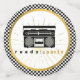 Urban Retro 90's Hip Hop Baby Shower Vibe! features adorable shy Afro African American baby boy. Modern white brick background. Black, white and gold colours. Chequerboard pattern accents and boombox. Customise with mum and dad's name! ©2022 Miss Sassy Party Designs