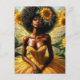 Afro Fairy Girl With Dark Skin and Sunflowers Postcard