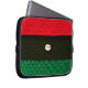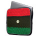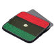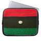 Red black and green flag image with white African cowrie shell printed on electronics bag is from a photo of an original crocheted creation designed handmade and Copyright © by published designer Delores Chamblin. The picture of the rectangular handcrafted clutch bag is reproduced on the travel case.