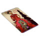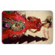 This Afrocentric Christmas Magnet features a photo image of a contemporary holiday tree made from a dress form dark-skin mannequin. The bodice is a short-sleeved sequined red dress and the bottom is made from artificial greenery decorated with red streamers and ornaments of purple, red and gold. The dress form has a big, bold necklace and matching bracelet with the same colour scheme. The African-American-style dreadlocks complete the fashion statement. A black Christmas tree silhouette stands in the background. The text reads: 'Merry Christmas' but may be edited or deleted for personalisation at no additional charge! Photography by Glenda Motsavage, a Florida-based travel writer and author.