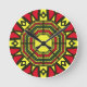 Afrocentric mandala wall clock was created using black, red, yellow and green magic markers and a kaleidoscope iPad app.