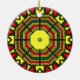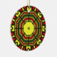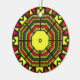 Afrocentric geometric round ornament was created using black, red, yellow and green magic markers and a kaleidoscope iPad app