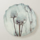 Elegant nature themed Round Pillow featuring a photo of dried flowers covered with fresh snow on a cold winter day. Minimalist design in pastel tones (light blue, white, brown). Great addition to contemporary, Scandinavian, japandi style home decor. Lovely gift for winter birthday or any special occasion.