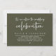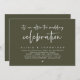 Mark the beginning of your forever with elegance using our contemporary classy olive green theme wedding elopement celebration invitation card, "it's an after the wedding celebration". Perfect for couples extending their joyous occasion, this invitation exudes sophistication with a hint of playfulness, setting the stage for a memorable event. Adorned with a timeless modern script design theme, it adds a touch of refined charm to your festivities. Crafted by TeeshaDerrick, this invitation promises to beautifully capture your love story.