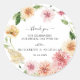 This romantic floral wedding thank you sticker features a soft watercolor garden wreath in blush, peach, and warm greenery tones for a timeless and feminine look. Delicate blooms frame your message beautifully, making it a charming finishing touch for wedding favors, envelopes, and packaging details.