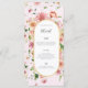 This romantic floral wedding menu features soft watercolor garden blooms set against a blush background for a refined and feminine look. Delicate florals in blush, peach, and warm greenery frame an elegant arched layout, creating a menu design that feels timeless, graceful, and thoughtfully styled.