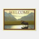 Somewhere in the interior of Alaska a moose strides through a pond on a sunny fall afternoon along with text reading, "WELCOME."