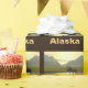 A moose plods through a pond on a sunny fall day in the Brooks Range of Alaska. Text reading "Alaska" also appears.
