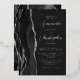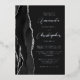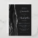 The left-hand edge of this elegant modern wedding invitation features a black watercolor agate border trimmed with faux silver glitter. The customisable text combines script and sans serif fonts in real silver foil on a dark background. The reverse side features a matching agate design.