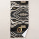 A black white and gold modern bath towel set with a fluid agate pattern ready for you to personalise with your monogram. These towels are both chic and stylish to help complement your existing decor.