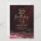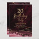 Burgundy and gold agate 20th birthday party invitation. Elegant modern design featuring watercolor agate marble geode background, faux glitter gold and typography script font. Trendy invite card perfect for a stylish women's bday celebration. Printed Zazzle invitations or instant download digital printable template.