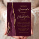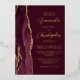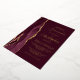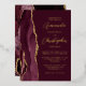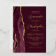 The left-hand edge of this elegant modern wedding invitation features a burgundy red watercolor agate border trimmed with faux gold glitter. The customisable text combines script and sans serif fonts in real gold foil on a burgundy background. The reverse side features a matching agate design.